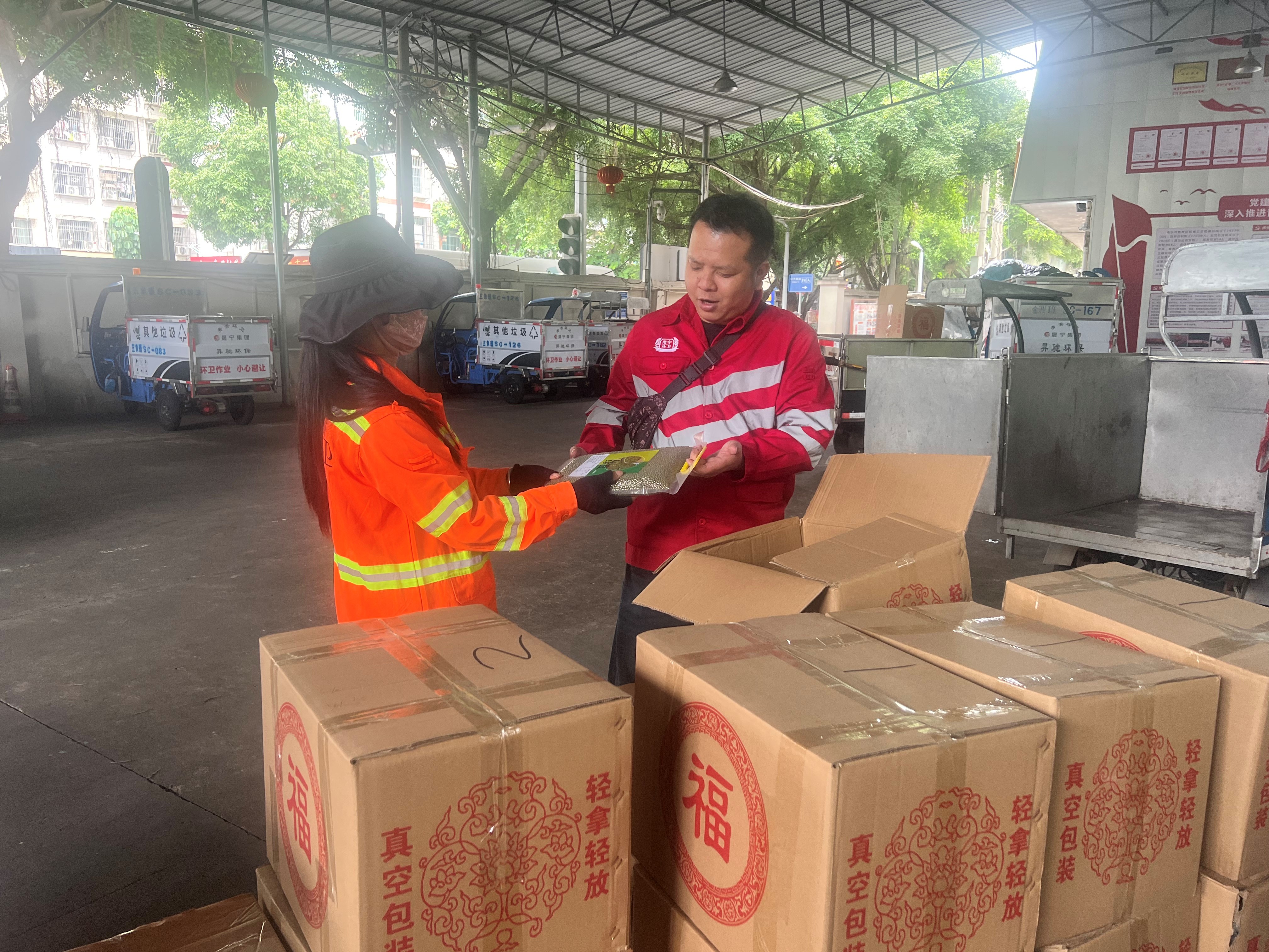 青驰公司各项目管理人员将白糖、绿豆、王老吉等防暑降温物品发放到一线环卫工人手中,叮嘱环卫工人在完成工作的同时,要时刻注意身体状况,认真做好安全防范和高温防暑降温措施。同时,青驰公司还通过科学调度环卫工人作业时间,加大机械化清扫与洒水频次,切实减轻人工劳动强度,全力守护每一位环卫工人的作业安全,让坚守岗位的“城市美容师”,感受到一丝丝“凉爽